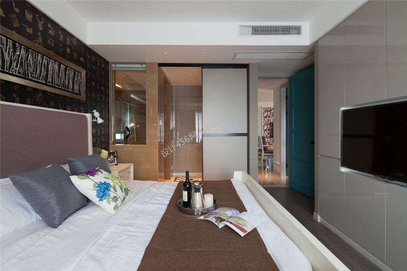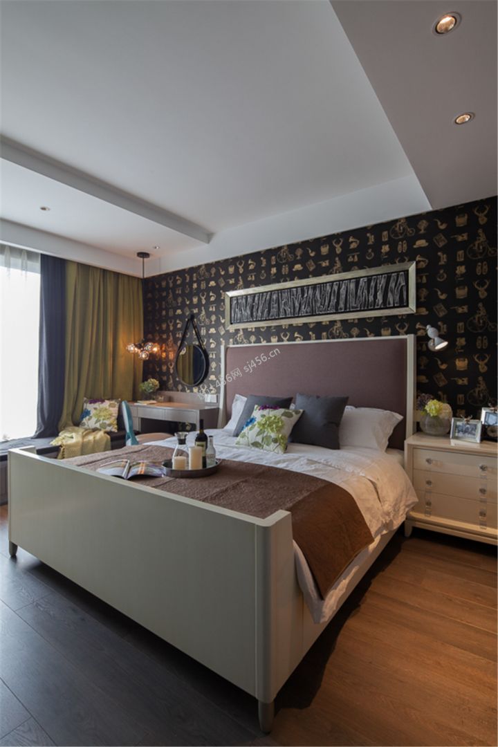 混搭风格127平家庭卧室床头壁纸装修效果图
