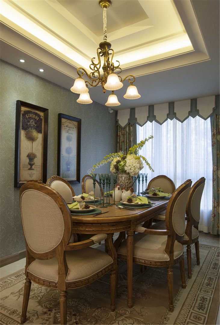 美式风格三居室餐厅错层吊顶设计效果图