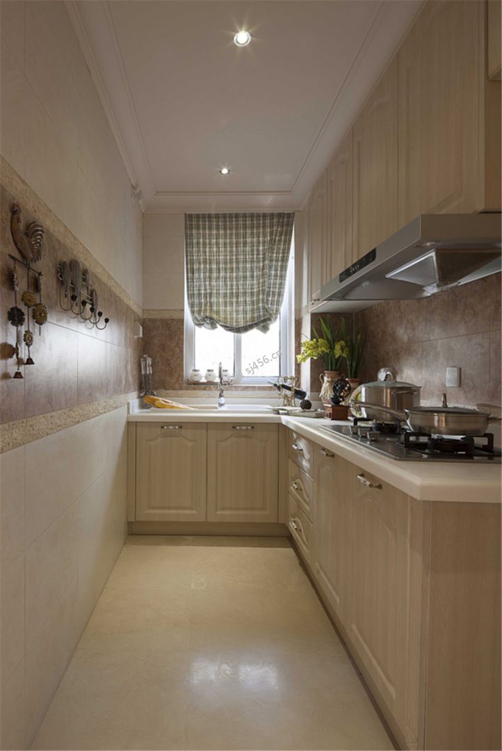 美式风格三居室长方形厨房装修效果图