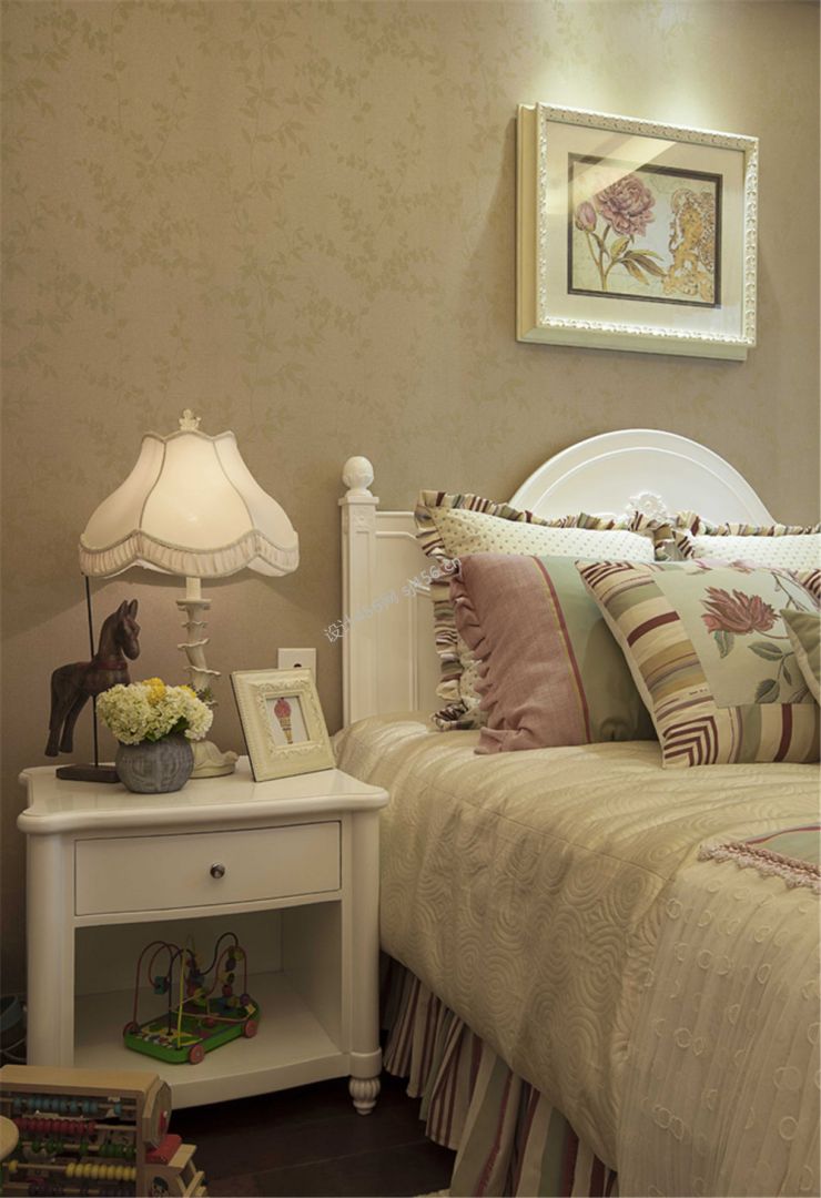 美式风格卧室床头柜台灯摆放效果图