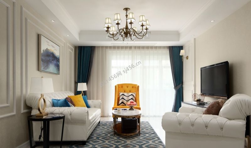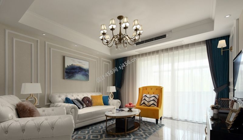 美式简约风格客厅家具沙发摆放效果图赏析