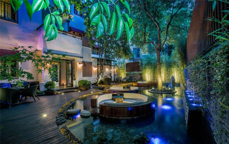 新中式风格220平米茶楼户外休闲区设计图片