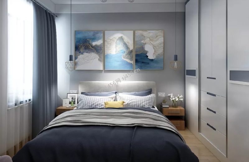 现代北欧风格120平米三居室卧室床头画设计图