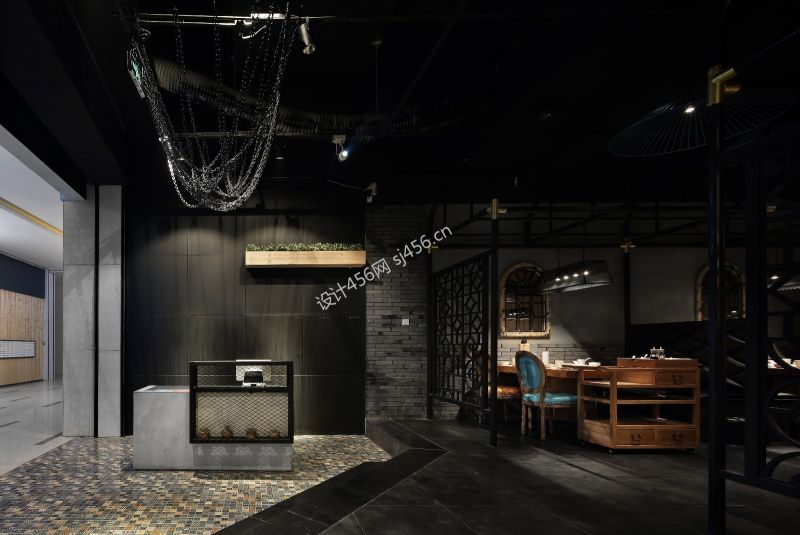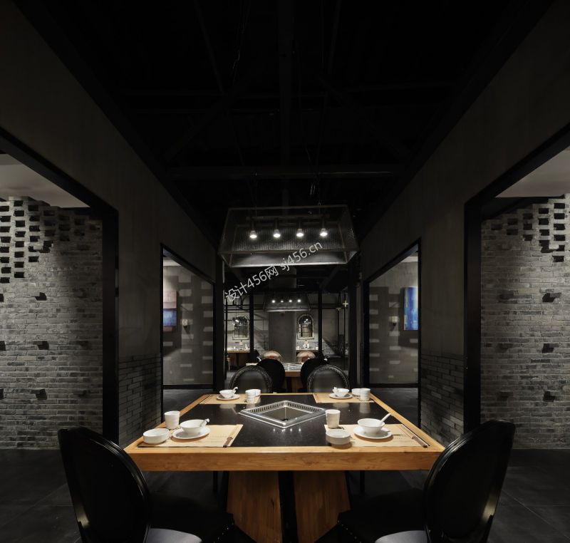 简约工业风格230平米火锅店前台背景墙装修效果图