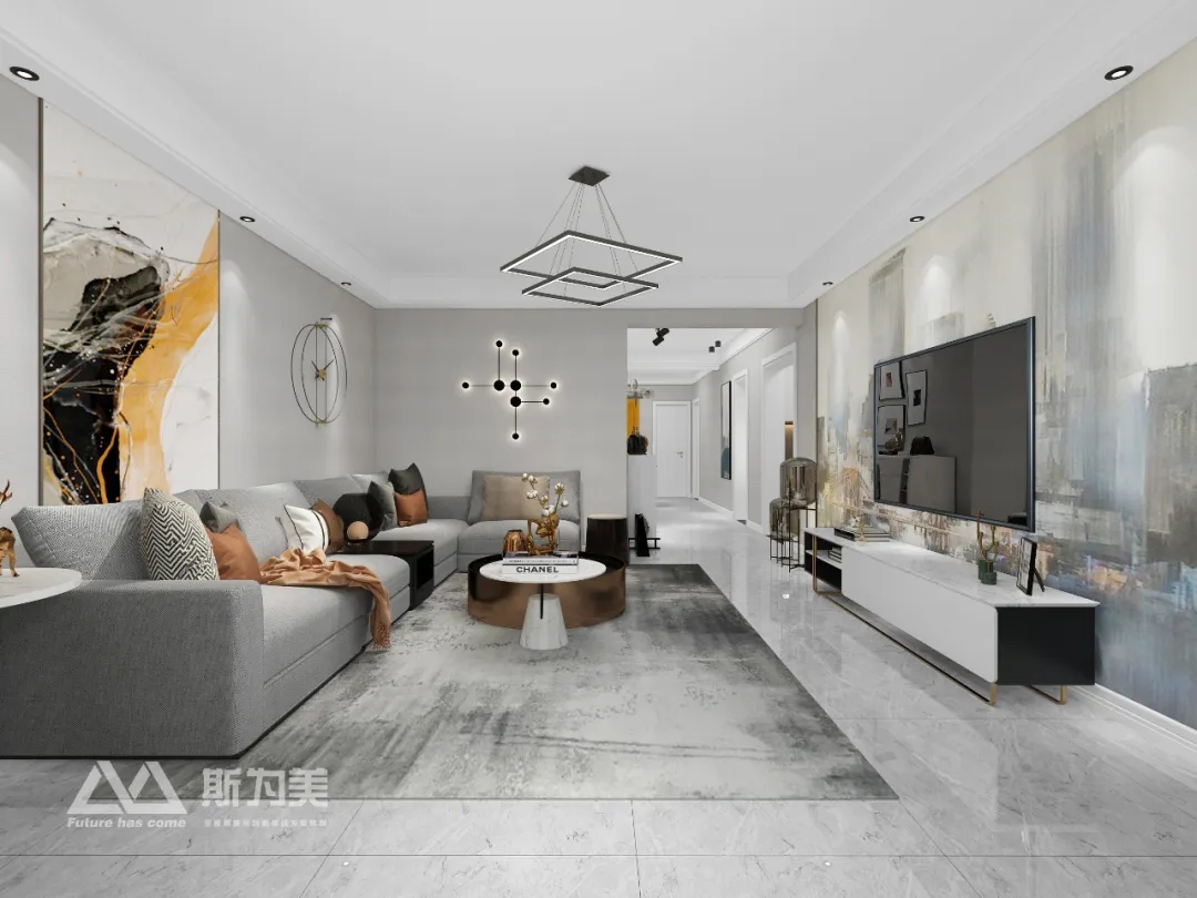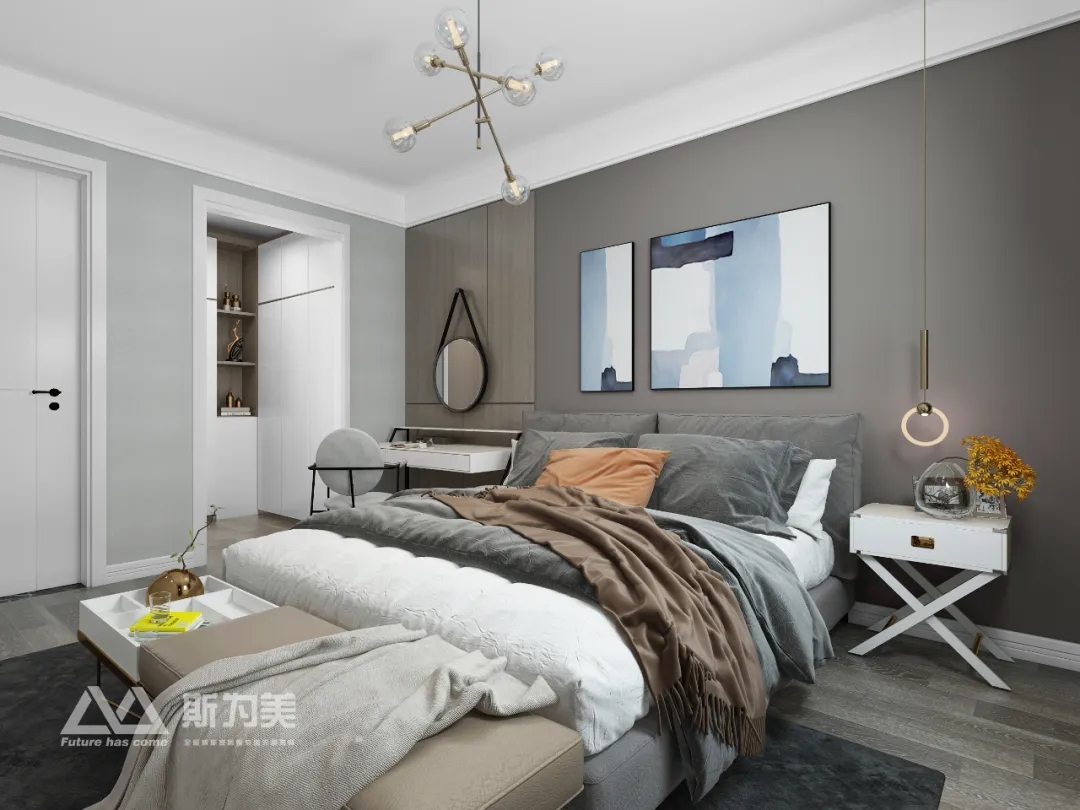 整屋公共区域地面以灰色地砖为主,简约精致。卧室内使用木地板,温馨大气。房屋整体效果明亮、温暖、鲜活。这是你想象中家的样子吗?