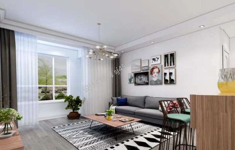 简约北欧风格60平小二居客厅沙发墙装修效果图