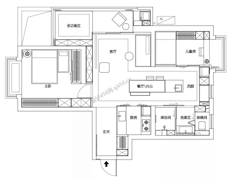 设计理念: 这套房子建筑面积92平米,一家三口居住,男业主是创业工作者,工作会议占据了生活的大部分时间,剩余的时间希望可以用心陪陪家人和孩子女业主的工作则比较规律,周末时间,偶尔有三五好友来聚餐面对未来生活的种种可能,如何才能让设计满足未来15年的居住需求呢? 这套房子建筑面积92平米,一家三口居住,男业主是创业工作者,工作会议占据了生活的大部分时间,剩余的时间希望可以用心陪陪家人和孩子女业主的工作则比较规律,周末时间,偶尔有三五好友来聚餐面对未来生活的种种可能,如何才能让设计满足未来15年的居住需求呢?