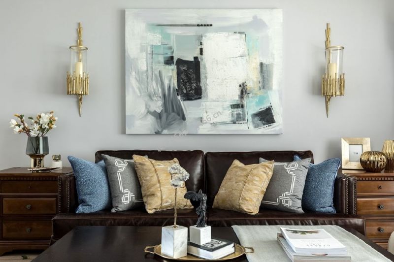 美式风格98平米二居室客厅沙发背景墙装修效果图