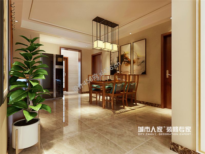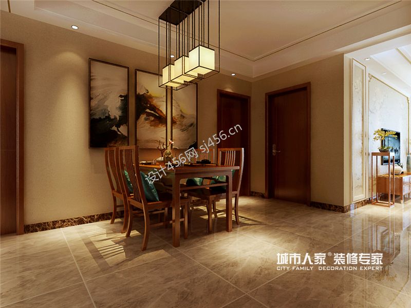 新中式风格127平米三居室餐厅地砖装饰效果图