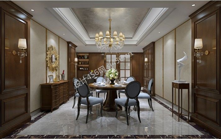 经典美式风525平米别墅餐厅装修效果图