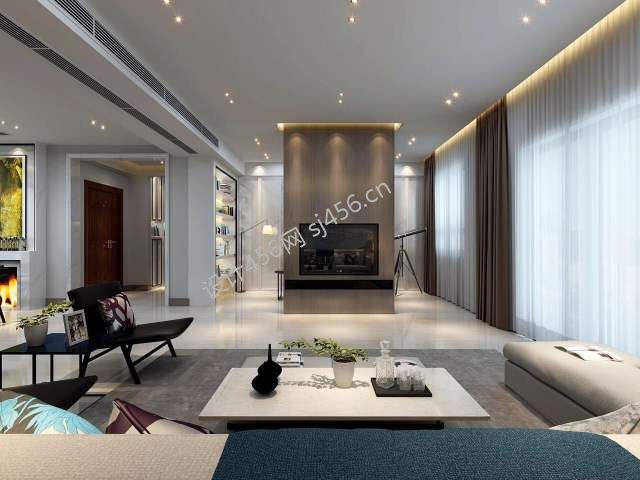 银海湾300平米别墅现代风格电视背景墙装修效果图