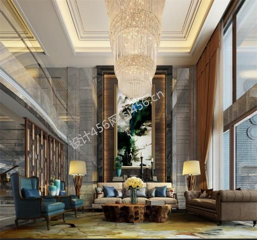 现代中式495平米别墅客厅家装效果图
