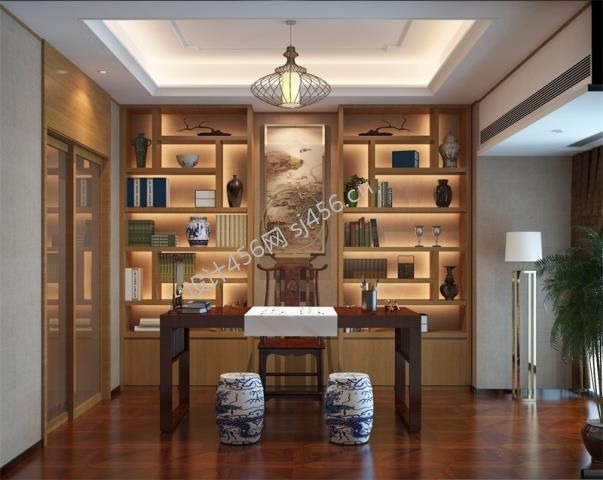 现代中式495平米别墅书房家装效果图