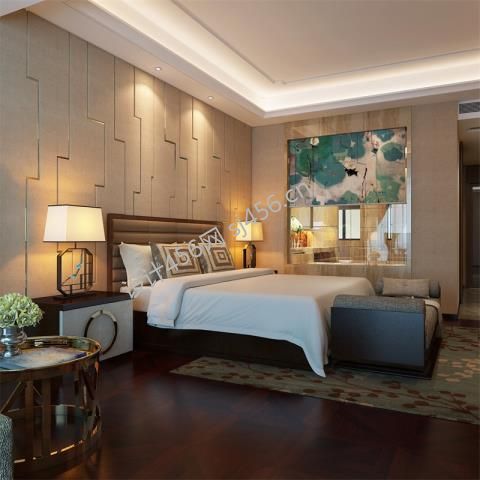 现代中式495平米别墅卧室家装效果图