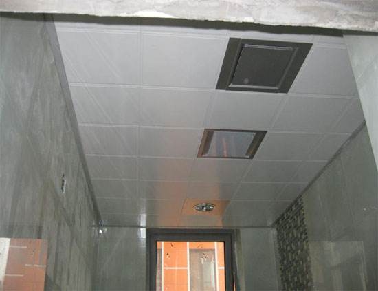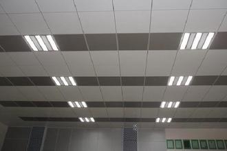 6、铝扣板的安装。在安装铝扣板的时候,切记不能野蛮进行装卸,顺着翻边部位按顺序下压,再将其推紧。铝扣板的规格也要按照设计的要求进行选购。另外,在安装铝扣板的同时,根据设计图纸及购买的灯具和通风口的规格大小开好孔洞,预留出安装灯具和通风口的相应位置。