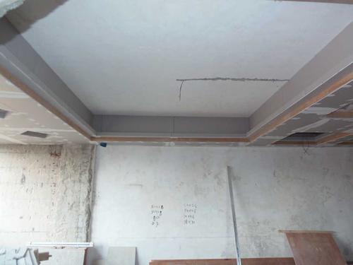 1、弹线。首先要确定吊顶安装的位置,根据楼层标高水平线,先用长尺测量并设计标高,用墨线在顶板上弹出主龙骨的位置。