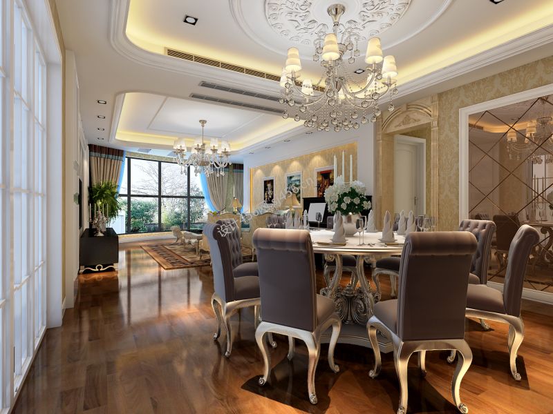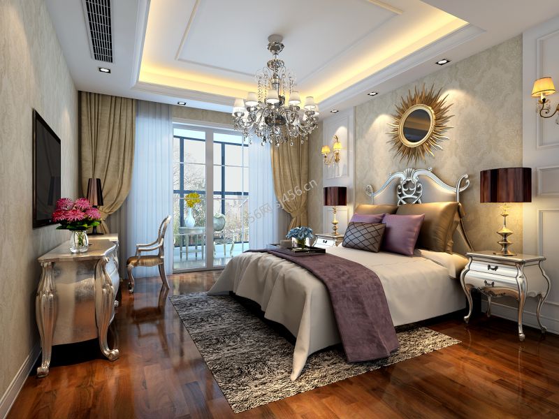 欧式风格142平米三室两厅卧室吊灯家装图片