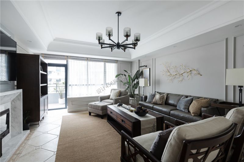 美式风格140平米四室两厅卧室吊灯装修效果图