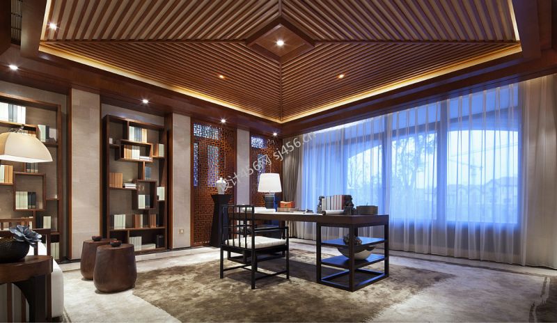 中式风格248平米别墅书房装修效果图