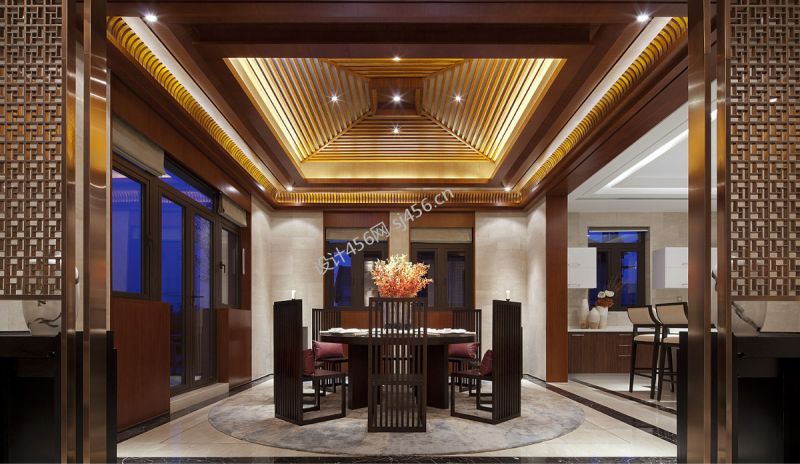 中式风格248平米别墅餐厅装修效果图