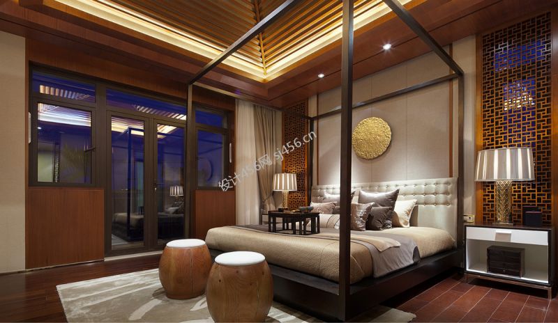 中式风格248平米别墅卧室装修效果图
