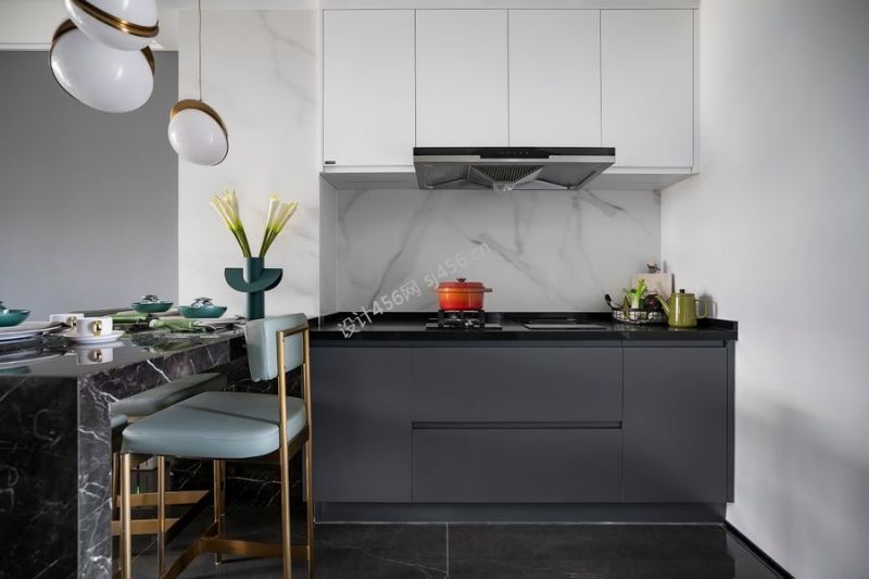 103平现代风厨房吧台装修实景图