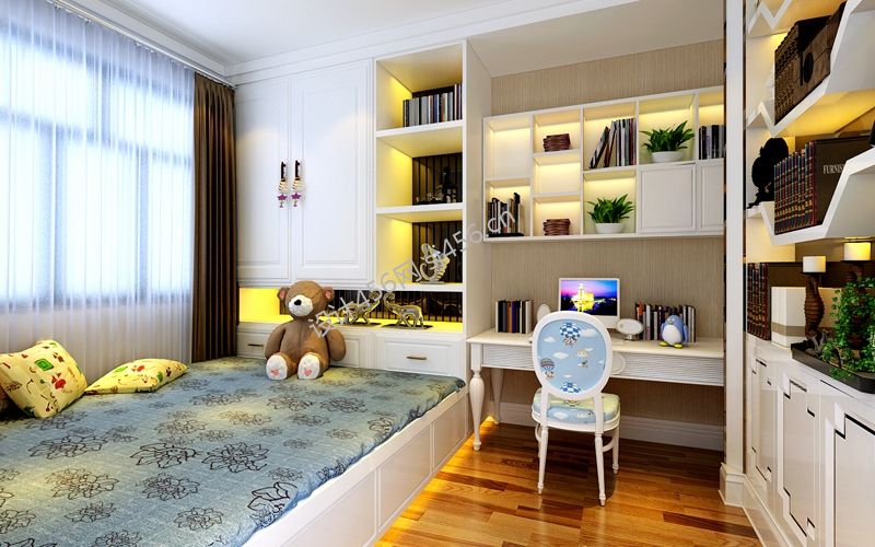100平米现代风三居卧室书柜装修效果图