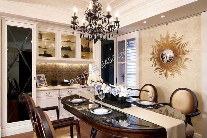 三居132平欧式风格餐厅吊灯装修图欣赏