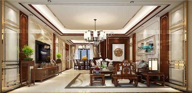远洋城·天曜新中式160平四居室客厅装修案例