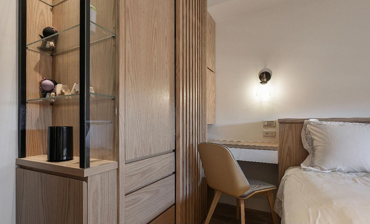 根据室内空间大小和个人喜好挑选你喜欢的墙柜款式,在这个步骤上要多花点心思,特别是老人和儿童房壁柜,要全面考虑到他们使用的安全性,尽量营造舒适、安心的居住环境。