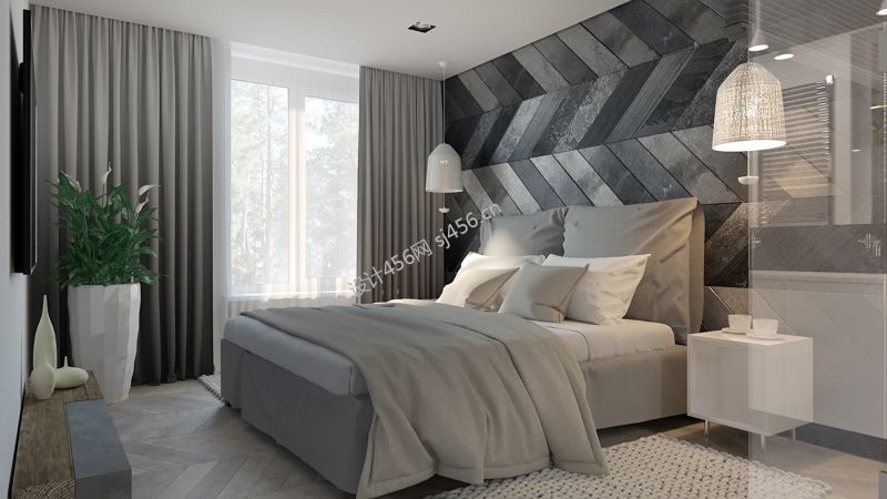三居94平现代风格卧室家装设计图