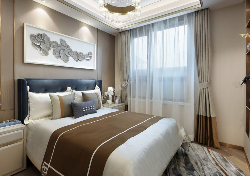 三居125方现代风格卧室窗帘设计图欣赏
