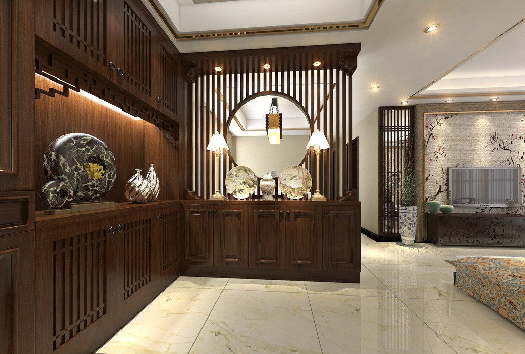 隔断型玄关要考虑玄关的采光性,多以矮柜搭配镂空、玻璃、博古架做隔断。相对来说,这种隔断的功能性要比直接在墙壁上做柜子差一些,不过好在我们至少能够拥有一个鞋柜。