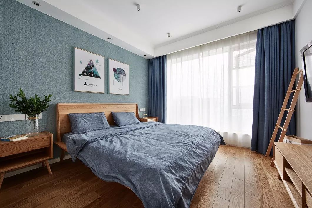 北欧风是现在小户型比较流行的设计,像这样蓝色的纯色窗帘就比较搭配北欧风,可以把单调的白色和灰色点缀的更加的好看。
