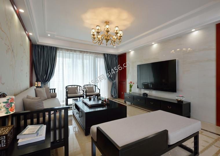 三居室118平方新中式风格餐厅吊灯家装设计图
