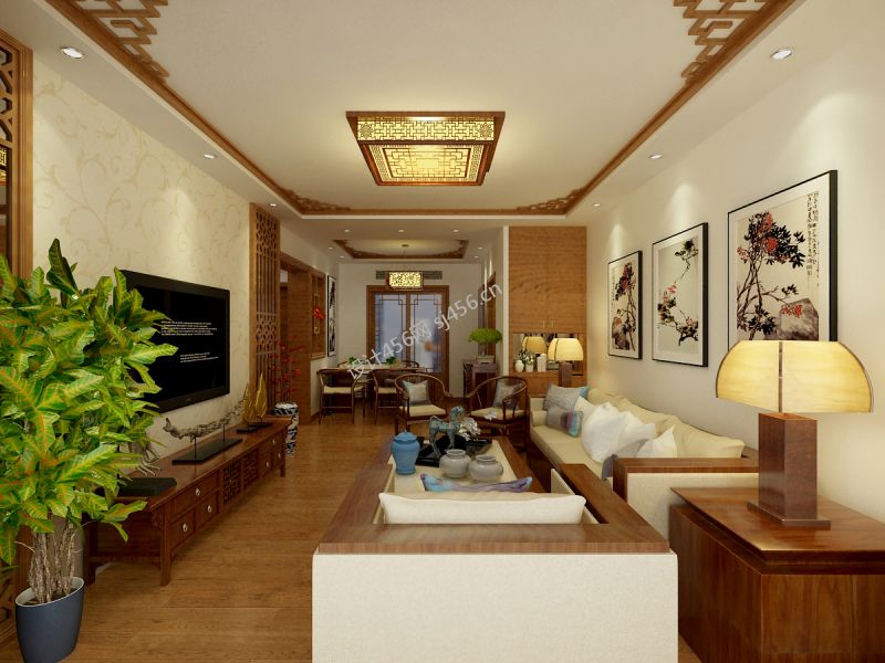 97平中式风格客厅装修效果图欣赏