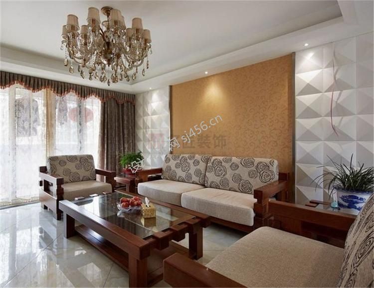 凯旋名门新中式122平四居室客厅装修案例