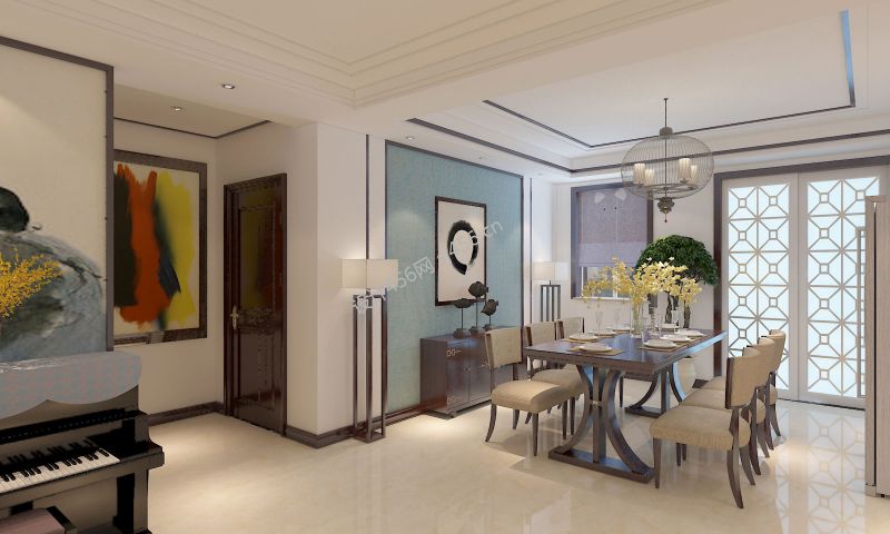 设计理念: 很多人习惯性的将中式和新中式风格混肴,其实,二者之间区别还是很大的。如果说,中式是父母这一辈人的钟爱,那么新中式的存在就是我们年轻人为了继承父母的想法又发展自己爱好的存在。因为新中式就是在中式的基础上添加与时代潮流相结合的东西,中式与新中式虽然只差一个字,但在形式和表现上都有推陈出新的变化。客厅 这是比较素雅的新中式颜色搭配,白、棕之间又点缀了蓝色,让整个风格都变得温柔起来。浓烈又清新、自然又浪漫。 蓝白棕相间的色调,加上暖色的地毯辅助,给人一种沉稳的感觉。细节方面的设计也考虑到位,各种元素都很好的融合在一起,整体和谐。有人认为中式家具好看不好用,主要是在坐具方面,部分明式坐具的线条过分横平竖直,与人体的腰背部曲线难以贴合。清式坐具背部繁复的雕花,让人感觉很不舒服。但是新中式家具兼具了中式家具的文化内韵,又满足了我们对于现代人生化设计的舒适追求。餐厅 餐厅的餐桌椅,与地面色调一致,形成整体感。餐椅软垫以及靠背的设计,考虑到使用的舒适性,即有中式的古典韵雅,也有现代的舒适自在。餐边柜、浅蓝色背景墙简单的艺术挂画,再加上绿植和餐桌上的黄色的花束,搭配和谐灵动。 餐厅空间通透,人物动线清晰,整体家居高低错落有致,将中国传统美学与现代时尚材质的巧妙兼柔在了一起。走廊 在室内设计中,一贯追求照搬古代设计往往效果不尽如人意,更要注重加入现代元素。现代技术中有很多新型材料,就可以善加利用进去。另外在设计中也可以把主人的个人喜好、品味等也加入进去。既满足现代人居住的要求,又能迎合中式家具的设计风格。儿童房 儿童房墙面和地面以白色和米色搭配,色泽干净清新,榻榻米与衣柜的组合使整个空间大方简洁,能为孩子营造明朗、开阔的成长环境。无论时代如何变迁中国人骨子里的中式情结是不会磨灭的新中式是对中国传统文化的一种自信它搭载着现代空间设计必将走向更广阔的前景 很多人习惯性的将中式和新中式风格混肴,其实,二者之间区别还是很大的。如果说,中式是父母这一辈人的钟爱,那么新中式的存在就是我们年轻人为了继承父母的想法又发展自己爱好的存在。因为新中式就是在中式的基础上添加与时代潮流相结合的东西,中式与新中式虽然只差一个字,但在形式和表现上都有推陈出新的变化。客厅 这是比较素雅的新中式颜色搭配,白、棕之间又点缀了蓝色,让整个风格都变得温柔起来。浓烈又清新、自然又浪漫。 蓝白棕相间的色调,加上暖色的地毯辅助,给人一种沉稳的感觉。细节方面的设计也考虑到位,各种元素都很好的融合在一起,整体和谐。有人认为中式家具好看不好用,主要是在坐具方面,部分明式坐具的线条过分横平竖直,与人体的腰背部曲线难以贴合。清式坐具背部繁复的雕花,让人感觉很不舒服。但是新中式家具兼具了中式家具的文化内韵,又满足了我们对于现代人生化设计的舒适追求。餐厅 餐厅的餐桌椅,与地面色调一致,形成整体感。餐椅软垫以及靠背的设计,考虑到使用的舒适性,即有中式的古典韵雅,也有现代的舒适自在。餐边柜、浅蓝色背景墙简单的艺术挂画,再加上绿植和餐桌上的黄色的花束,搭配和谐灵动。 餐厅空间通透,人物动线清晰,整体家居高低错落有致,将中国传统美学与现代时尚材质的巧妙兼柔在了一起。走廊 在室内设计中,一贯追求照搬古代设计往往效果不尽如人意,更要注重加入现代元素。现代技术中有很多新型材料,就可以善加利用进去。另外在设计中也可以把主人的个人喜好、品味等也加入进去。既满足现代人居住的要求,又能迎合中式家具的设计风格。儿童房 儿童房墙面和地面以白色和米色搭配,色泽干净清新,榻榻米与衣柜的组合使整个空间大方简洁,能为孩子营造明朗、开阔的成长环境。无论时代如何变迁中国人骨子里的中式情结是不会磨灭的新中式是对中国传统文化的一种自信它搭载着现代空间设计必将走向更广阔的前景