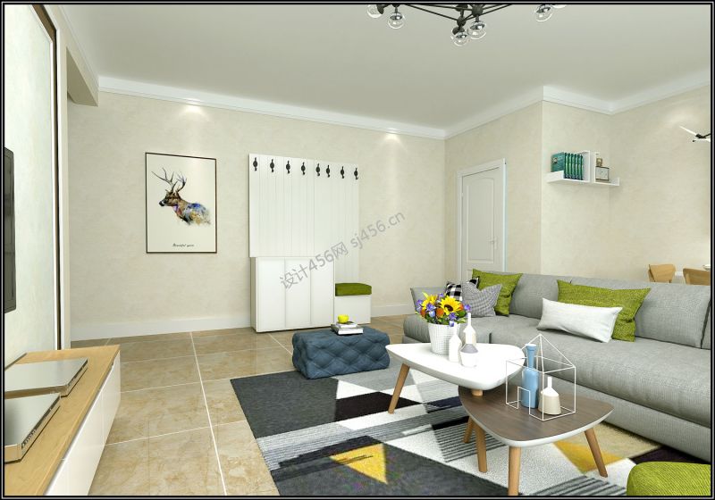 设计理念: 家是心灵的港湾,“现代简约风格”以其纯美的色彩组合,赢得人们对它的喜爱。随着人们在生活中感受到越多简约的魅力,也越来越流行这种“简约但并不简单的装饰风格”。当疲惫的身心对家的依恋越发强烈,人们想要的是轻松、自由的环境,“现代简约风格”自然就成为家居设计的一种风尚。它追求时尚与潮流,非常注重居室空间的布局与使用功能的完美结合。 此案例一进门入眼的就是纯白色的鞋柜加换鞋凳一体的组合 ,加一幅麋鹿的挂画,简约到极致。整个空间尽可能不用装饰和取消多余的东西,由于线条简单、装饰元素少,则需要完美的软装配合,才能显示出美感。例如沙发需要靠垫、餐桌需要餐桌布、床需要窗帘和床单陪衬,软装到位是本案设计的关键。 客厅在设计时主要以简洁明快的设计风格为主调,功能实用至上,细节处又不缺乏精致,墙面、地面、顶面以及家具陈设乃至灯具等均以简洁的造型、纯洁的质地、精细的工艺为其特征。 过多的颜色只会给人以杂乱无章的感觉,在现代风格中多使用一些纯净的色调进行搭配设计,这样无论家具造型和空间布局,才会给人耳目一新的惊喜。原木加白色的电视柜,小茶几,电视背景墙等等,无一不是纯净色彩的组合。 对于工作上的事情很繁杂的人来说,家里的东西就不需要太多。太多无用物品的堆砌,反而会掩盖住你对空间最本能的需求。因此才会有“极简主义”概念的流行。餐厅也选用了麋鹿的挂画,客厅同款的吊灯,原木色的餐桌椅,隐藏于沙发背后,使整个空间融为一体。只要你想你就可以把生活过成你想要的样子 家是心灵的港湾,“现代简约风格”以其纯美的色彩组合,赢得人们对它的喜爱。随着人们在生活中感受到越多简约的魅力,也越来越流行这种“简约但并不简单的装饰风格”。当疲惫的身心对家的依恋越发强烈,人们想要的是轻松、自由的环境,“现代简约风格”自然就成为家居设计的一种风尚。它追求时尚与潮流,非常注重居室空间的布局与使用功能的完美结合。 此案例一进门入眼的就是纯白色的鞋柜加换鞋凳一体的组合 ,加一幅麋鹿的挂画,简约到极致。整个空间尽可能不用装饰和取消多余的东西,由于线条简单、装饰元素少,则需要完美的软装配合,才能显示出美感。例如沙发需要靠垫、餐桌需要餐桌布、床需要窗帘和床单陪衬,软装到位是本案设计的关键。 客厅在设计时主要以简洁明快的设计风格为主调,功能实用至上,细节处又不缺乏精致,墙面、地面、顶面以及家具陈设乃至灯具等均以简洁的造型、纯洁的质地、精细的工艺为其特征。 过多的颜色只会给人以杂乱无章的感觉,在现代风格中多使用一些纯净的色调进行搭配设计,这样无论家具造型和空间布局,才会给人耳目一新的惊喜。原木加白色的电视柜,小茶几,电视背景墙等等,无一不是纯净色彩的组合。 对于工作上的事情很繁杂的人来说,家里的东西就不需要太多。太多无用物品的堆砌,反而会掩盖住你对空间最本能的需求。因此才会有“极简主义”概念的流行。餐厅也选用了麋鹿的挂画,客厅同款的吊灯,原木色的餐桌椅,隐藏于沙发背后,使整个空间融为一体。只要你想你就可以把生活过成你想要的样子