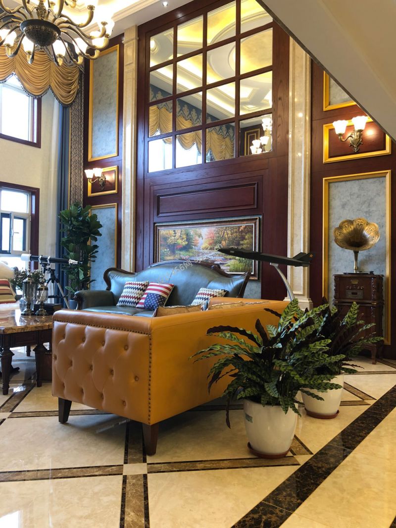 混搭别墅装修效果图 2020客厅真皮沙发效果图