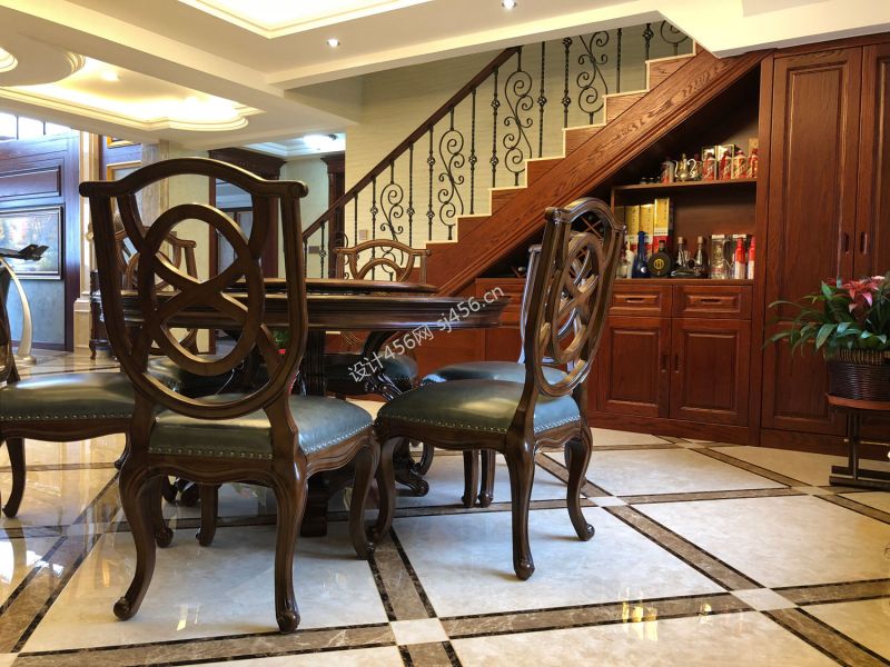 设计理念: 无论是繁华城市孤独一角,还是残垣断壁一处荒凉,经过设计师的一番布置,总能化腐朽为神奇,让这方空间饱含诗意。新房装修的时候,家里的每一个恩都有自己的想法,这便是考验设计师能力的时候了,怎样将不同的元素进行搭配,组成有个性特征的新组合体呢?来看看设计总监孙建康是如何玩转风格混搭的吧! 玄 关:复古造型的玄关柜,奢华的摆件,再加上柔和的灯光,无不展示了聂老师的高端品位和格调。 客 厅:挑空设计,使得整个空间大气典雅,也展现了聂老师的高品位和不俗的格调。一楼的客厅混搭很微妙,不同风格、不同材料、不同颜色的单品搭配在一起,让光线在空间里自由穿行,动静相宜。蜿蜒的线条、造型精美的家具将时尚新潮的混搭格调一一展现:既有中式代表的实木护墙板,又有美式精美的家具;既有古典的留声机又有现代的望远镜。让客厅这一在人们的日常生活中使用最为频繁的空间充满了优雅浪漫的生活气息。 局 部:简美风格是整个家的基调,比如:餐边柜和餐椅。方形雕花的吊顶搭配圆形的餐桌,餐边柜的壁纸图案也是经过精挑细选的,楼梯下的空间并没有浪费,直接做成了储物柜,既可以储物又可以摆放酒类等物品。 茶 室:从楼梯上来可见的是中式元素十足的休闲区,在设计、选材中随处可见中式元素,在整体混搭的空间里却毫无违和感,一杯茶,一本书,一枝花……每一处都散发着舒适感。 主 卧:主卧空间,美式风格体现的淋漓尽致,整体以素雅的米色绿色为主色调,清新雅致,含蓄浪漫,并且巧妙采用铁艺吊灯及古典家具来提升空间的气质,更加迷人。 次 卧:以中式风格的棕红色和米色为主色调,美式的壁灯搭配碎花壁纸,棕红色开放漆实木衣柜,中式的书桌椅为次卧更添古色古香的味道,旁边的美式电视柜在这个空间并没有显得很突兀,反而融进了这个空间。 形散而神不散的统一,描述的就是这个空间。 无论是繁华城市孤独一角,还是残垣断壁一处荒凉,经过设计师的一番布置,总能化腐朽为神奇,让这方空间饱含诗意。新房装修的时候,家里的每一个恩都有自己的想法,这便是考验设计师能力的时候了,怎样将不同的元素进行搭配,组成有个性特征的新组合体呢?来看看设计总监孙建康是如何玩转风格混搭的吧! 玄 关:复古造型的玄关柜,奢华的摆件,再加上柔和的灯光,无不展示了聂老师的高端品位和格调。 客 厅:挑空设计,使得整个空间大气典雅,也展现了聂老师的高品位和不俗的格调。一楼的客厅混搭很微妙,不同风格、不同材料、不同颜色的单品搭配在一起,让光线在空间里自由穿行,动静相宜。蜿蜒的线条、造型精美的家具将时尚新潮的混搭格调一一展现:既有中式代表的实木护墙板,又有美式精美的家具;既有古典的留声机又有现代的望远镜。让客厅这一在人们的日常生活中使用最为频繁的空间充满了优雅浪漫的生活气息。 局 部:简美风格是整个家的基调,比如:餐边柜和餐椅。方形雕花的吊顶搭配圆形的餐桌,餐边柜的壁纸图案也是经过精挑细选的,楼梯下的空间并没有浪费,直接做成了储物柜,既可以储物又可以摆放酒类等物品。 茶 室:从楼梯上来可见的是中式元素十足的休闲区,在设计、选材中随处可见中式元素,在整体混搭的空间里却毫无违和感,一杯茶,一本书,一枝花……每一处都散发着舒适感。 主 卧:主卧空间,美式风格体现的淋漓尽致,整体以素雅的米色绿色为主色调,清新雅致,含蓄浪漫,并且巧妙采用铁艺吊灯及古典家具来提升空间的气质,更加迷人。 次 卧:以中式风格的棕红色和米色为主色调,美式的壁灯搭配碎花壁纸,棕红色开放漆实木衣柜,中式的书桌椅为次卧更添古色古香的味道,旁边的美式电视柜在这个空间并没有显得很突兀,反而融进了这个空间。 形散而神不散的统一,描述的就是这个空间。