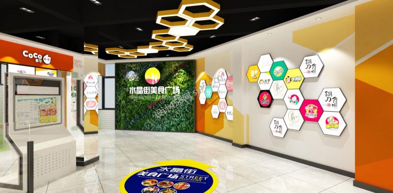 设计理念: 淄博水晶街美食广场位于山东理工大学对面的水晶街商业街二楼,是集各种美食于一体的综合美食广场。该美食广场为淄博集简装饰设计工程有限公司与水晶街招商部的第一次合作,业主为年轻的从业者,因此主张整体设计以年轻时尚简约为主题。淄博集简装饰设计工程有限公司专业从事大型美食城项目设计与施工,美食广场设计与施工,主题商业餐饮街区设计,主题商场改造设计,美食城装修设计,餐厅设计,商业设计,美食广场设计。淄博集简装饰设计工程有限公司是淄博集设计与施工于一体的专业公装公司,拥有众多专业设计师与一流施工人员。设计与施工类别有商业店铺、企业办公、餐饮、美容健身瑜伽会所、教育培训、商品零售、连锁加盟店等。 淄博水晶街美食广场位于山东理工大学对面的水晶街商业街二楼,是集各种美食于一体的综合美食广场。该美食广场为淄博集简装饰设计工程有限公司与水晶街招商部的第一次合作,业主为年轻的从业者,因此主张整体设计以年轻时尚简约为主题。淄博集简装饰设计工程有限公司专业从事大型美食城项目设计与施工,美食广场设计与施工,主题商业餐饮街区设计,主题商场改造设计,美食城装修设计,餐厅设计,商业设计,美食广场设计。淄博集简装饰设计工程有限公司是淄博集设计与施工于一体的专业公装公司,拥有众多专业设计师与一流施工人员。设计与施工类别有商业店铺、企业办公、餐饮、美容健身瑜伽会所、教育培训、商品零售、连锁加盟店等。