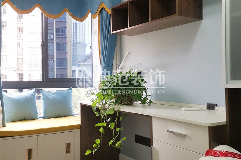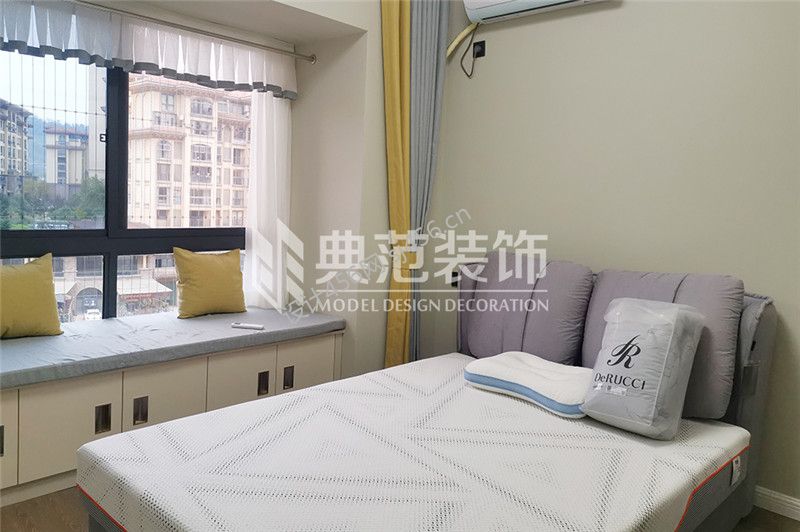 107平米现代简约风格三居室卧室飘窗台装修设计图