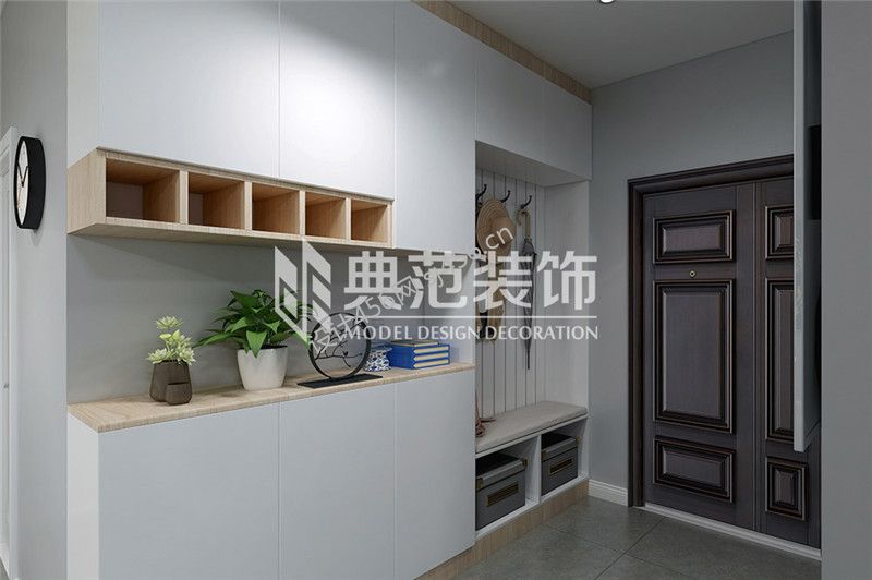 97平米现代北欧风格三居进门玄关柜子装修案例