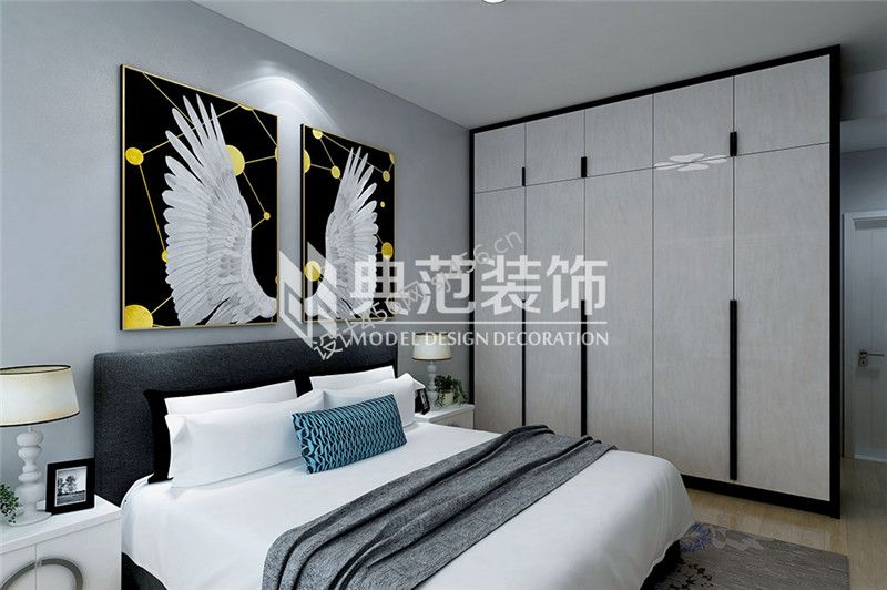 97平米现代北欧风格三居卧室背景墙装修设计图