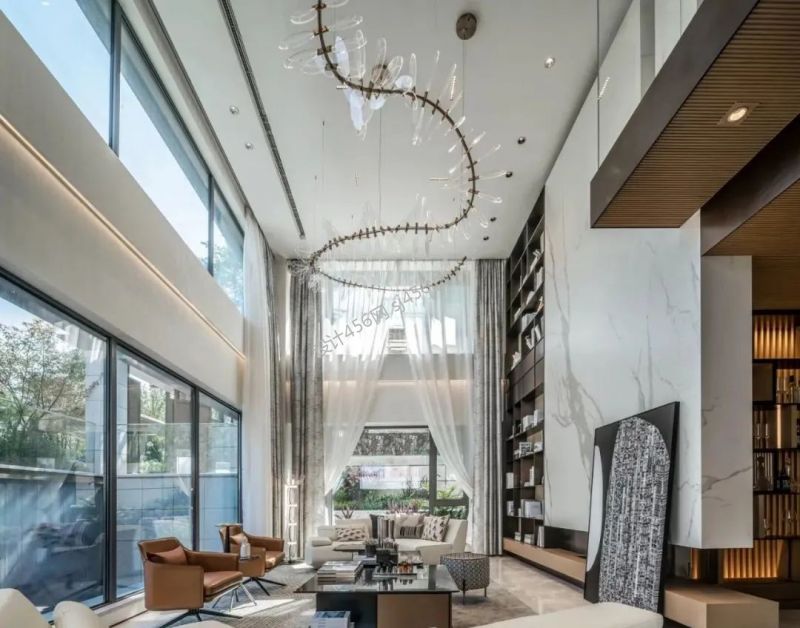 详情275平米别墅轻奢风格客厅吊灯设计装修实景图
