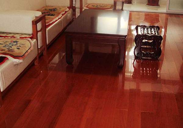 红檀是商用名,学名铁线子,产地南美居多。本木材纹络较细腻,可尽量减少拼花色及纹络的损耗,故适合厅内面积20平方米,但由于颜色偏红,所以难于配备家具。铁线子本身木质较硬,弹性较好,收缩性较差,故建议使用免漆地板。铁线子在施工工艺过程中,应特别注意不要损坏地板正面及尽量减少划痕,否则将很难修复,并尽量与水接触,因其变形后很难恢复。
