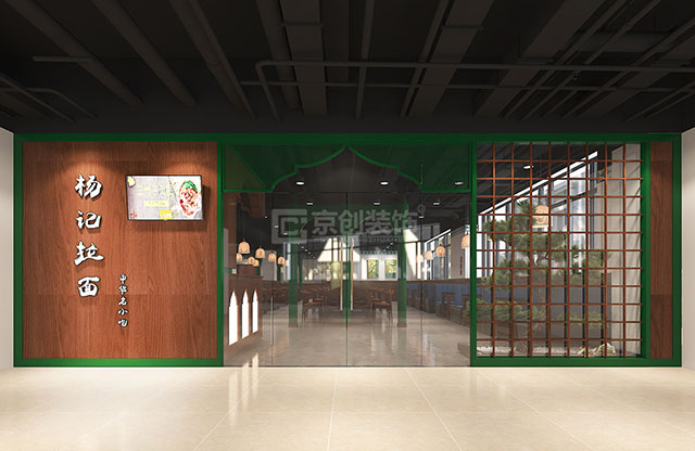 拉面馆装修设计创意不是一个偶然的过程,它需要设计者不断的搜索新思路,新方法,解决创意道路上所遇到的问题.色彩的表情通常是通过对比实现的,有的色彩对比五彩斑斓,炫耀夺目,显得十分华丽,又有色彩对比是含蓄的,稳定的,郑州杨记拉面馆装饰设计,显得朴实无华.